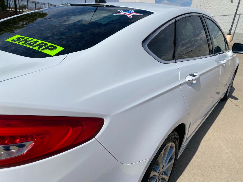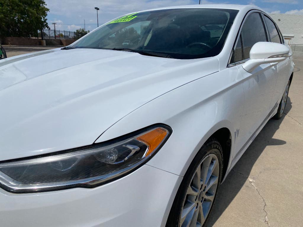 This Fusion comes with a 12month/12,000 Mile limited powertrain warranty that covers the engine, transmission, differentials and roadside assistance that STARTS ON DAY 1! Call 505-377-3207 for details.
